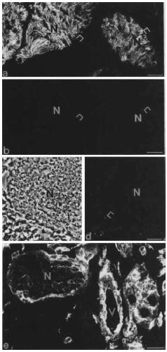 Fig. 4a-e. Immunofluorescence microscopy of frozen sections