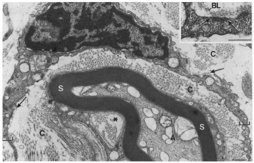(BL). Collagen fibrils (C) are seen on either side of the perineurium