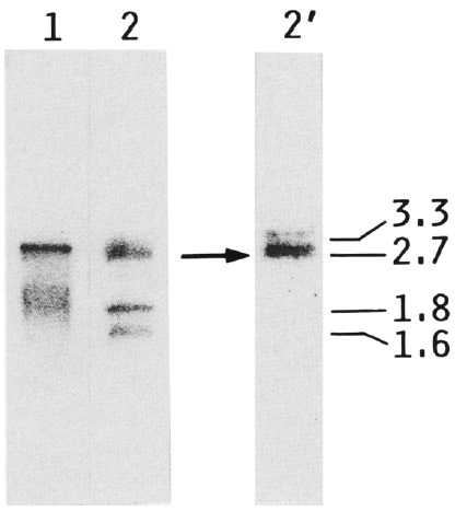for 4 hr at - 70~ with an intensifying screen. (Lane 1)