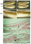 Analysis of embryos injected with anti-EDEN-BP antibodies. (A-D) Embryos were injected into one blastomere at the two-cell stage with control (non-immune, C-Ab) or anti-EDEN-BP (E-Ab) antibodies. They were allowed to develop until stage 39 and then were stained with the myotome-specific 12/101 monoclonal antibody. C and D are higher magnifications of the lower embryos in A and B, respectively. (A,C) Injected sides and (B,D) non-injected sides of the same embryos. (E-G) Hematoxylin and Eosin-stained horizontal sections of stage 39 embryos injected at the two-cell stage with 200 ng of anti-EDEN-BP antibodies. (F,G) Higher magnifications of the somites of the non-injected (F) and injected (G) sides. n, notochord; s, somite. Arrow indicates the injected side. Asterisks highlight successive somites for embryos showing segmentation. Scale bars: 50 μm.
