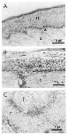 layer (C). (The retinal pigmented epithelium is seen on the left, and the retinal ganglion cell layer is to the right.) In contrast to the retina,