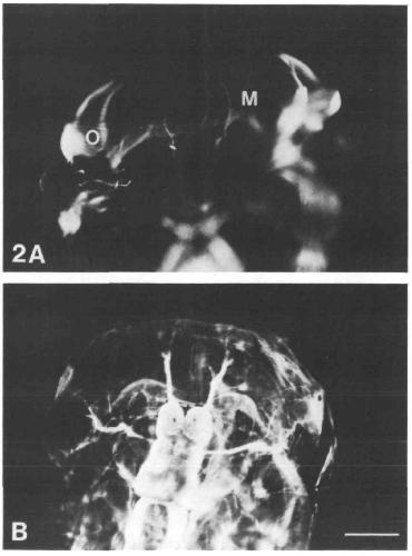 tadpole tail. The pigmented cells of the neuroepithelium do not stain, nor do the myotomal muscles separating each set