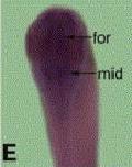 boundary of the ventricular zone. Note the gradient of expression in the CNS. (E) Stage 37 embryo, dorsal view, anterior toward the top. Intense stain is located