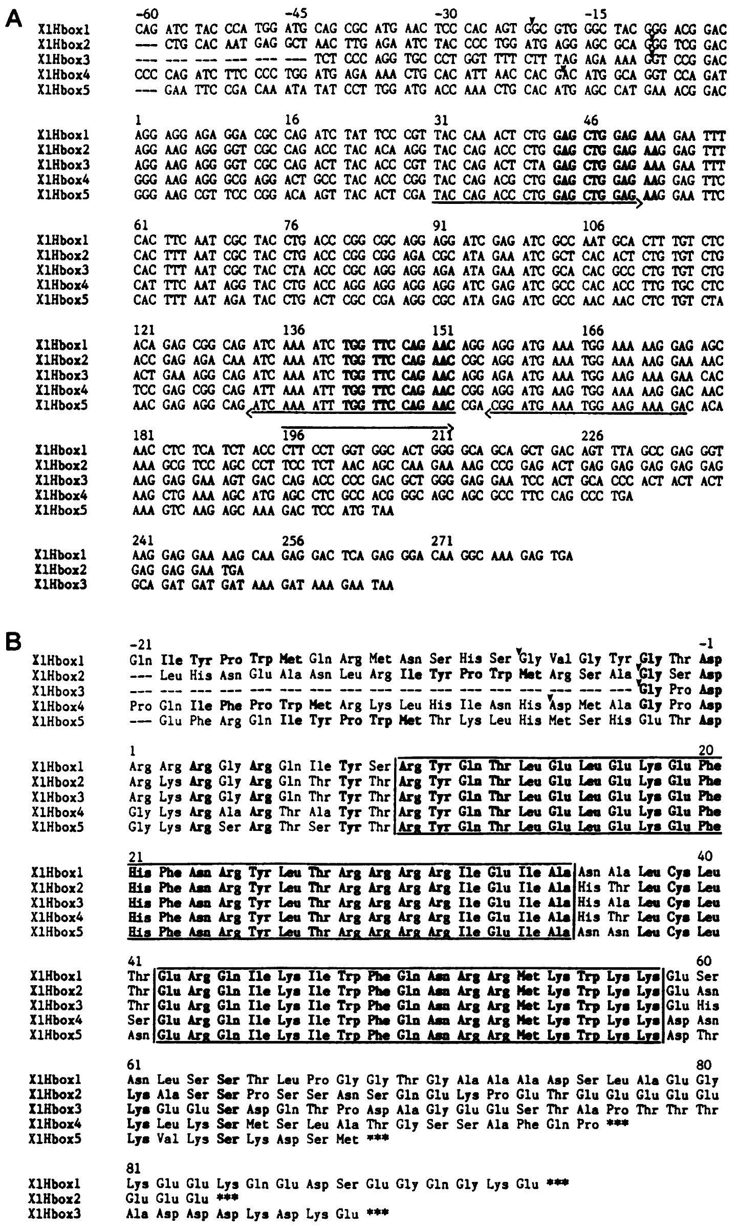 A: Nucleotide sequences of all five classes of XlHbox transcripts of the