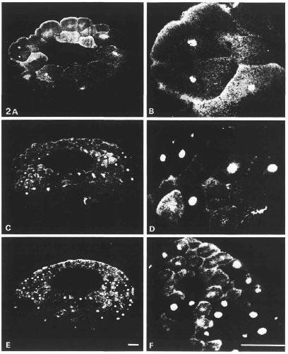 (C,D), and about the 13th cleavage division (E, F) were fixed according to Romeis and embedded in wax. Sections were