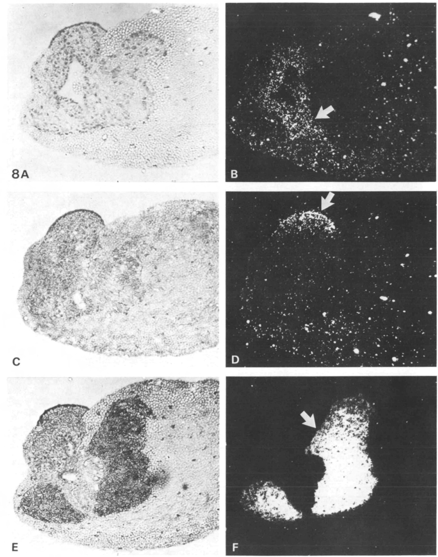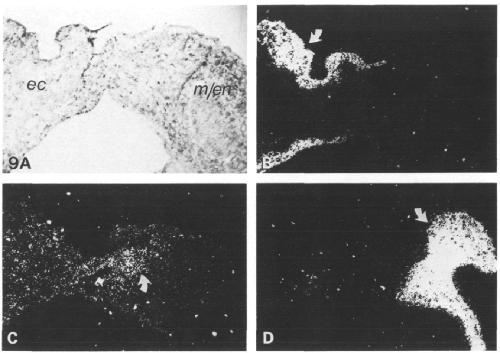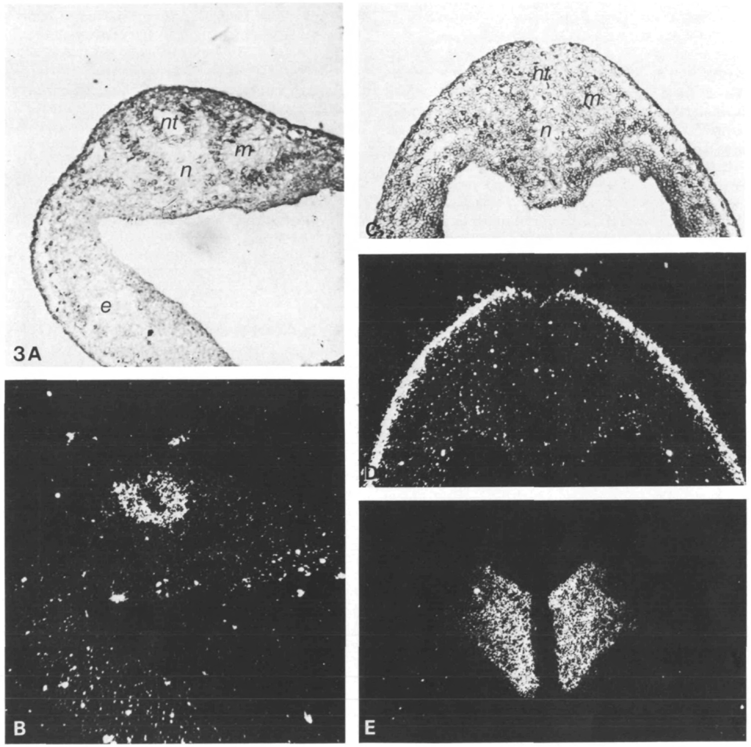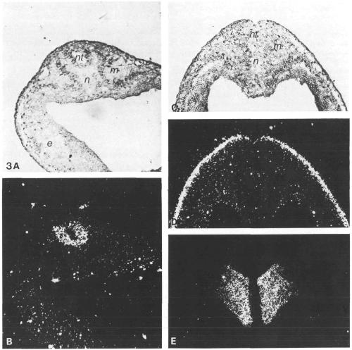 plate, but not surrounding ectoderm. In addition, hybridization is concentrated in the medial, deep regions of the neural