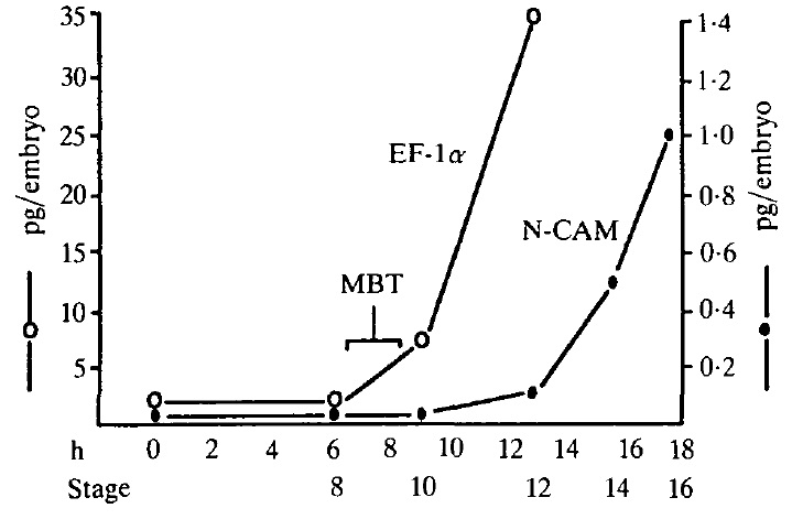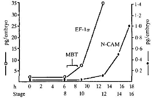 EF-lar RNA increases and marks the MBT whereas NCAM