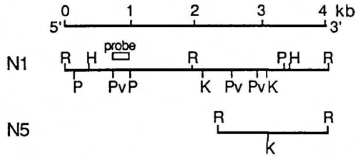 Fig. 1. Restriction maps for the Nl and N5 Xenopus