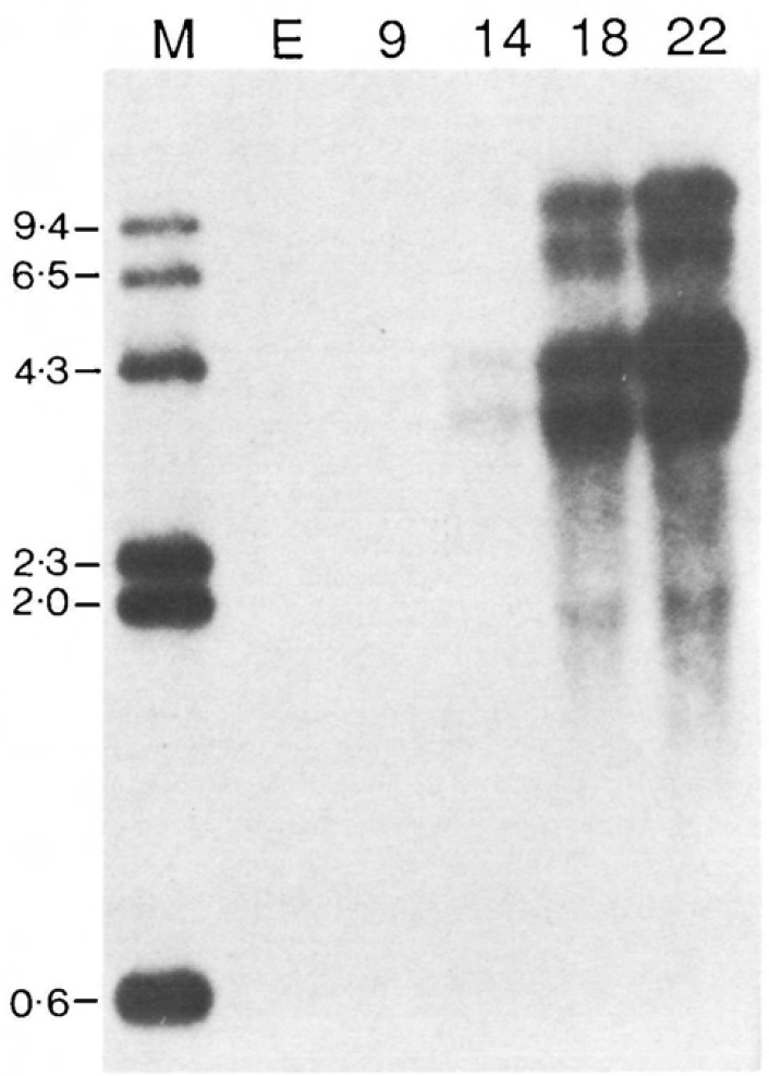 radiolabelled Nl cDNA. An autoradiogram obtained by a