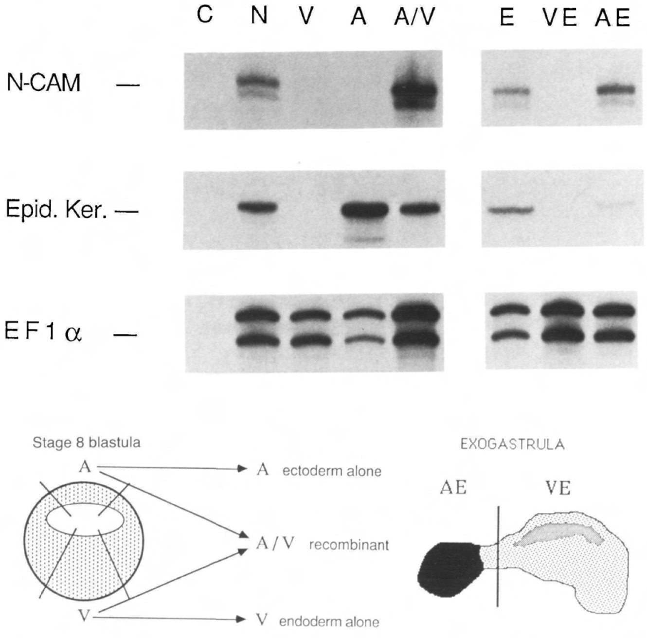 similar levels in exogastrula (E) and normal embryos (N). This N-CAM expression is concentrated in the ectodermal