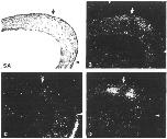 that the muscle actin probe hybridizes to a block of tissue in the mesodermal half (arrow in D). The N-CAM probe