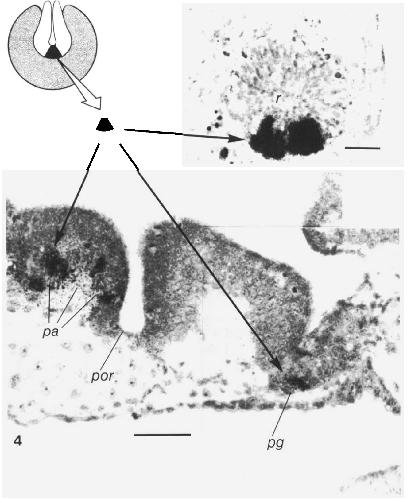 most anterior portion of this pituitary anläge is labelled (arrow). Also indicated is the