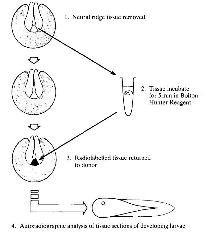 Fig. 3. Schematic diagram of procedure to radiolabel ventral neural ridge tissue with 125I.
