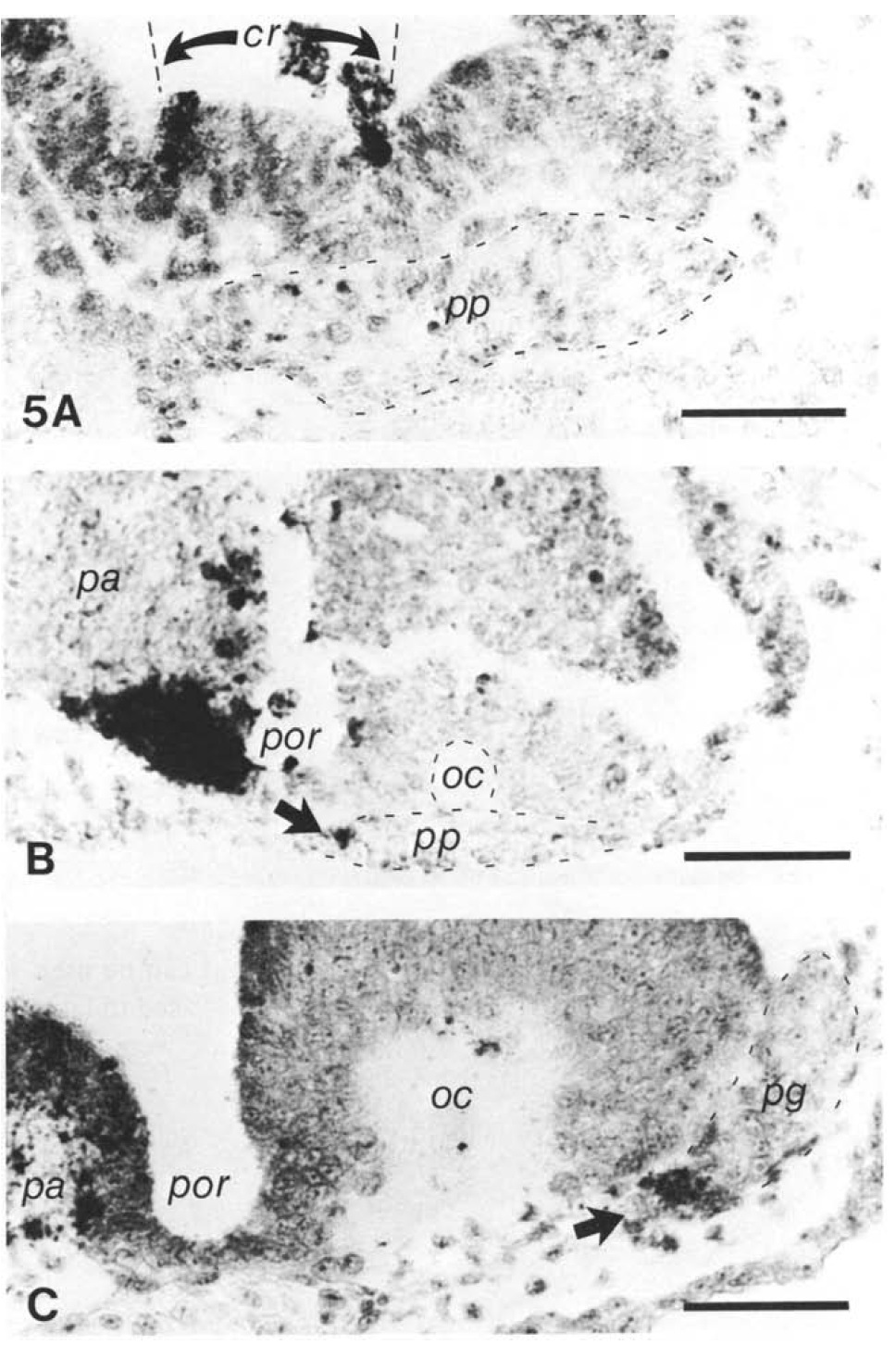 (arrow). Bars, 0-1 mm.