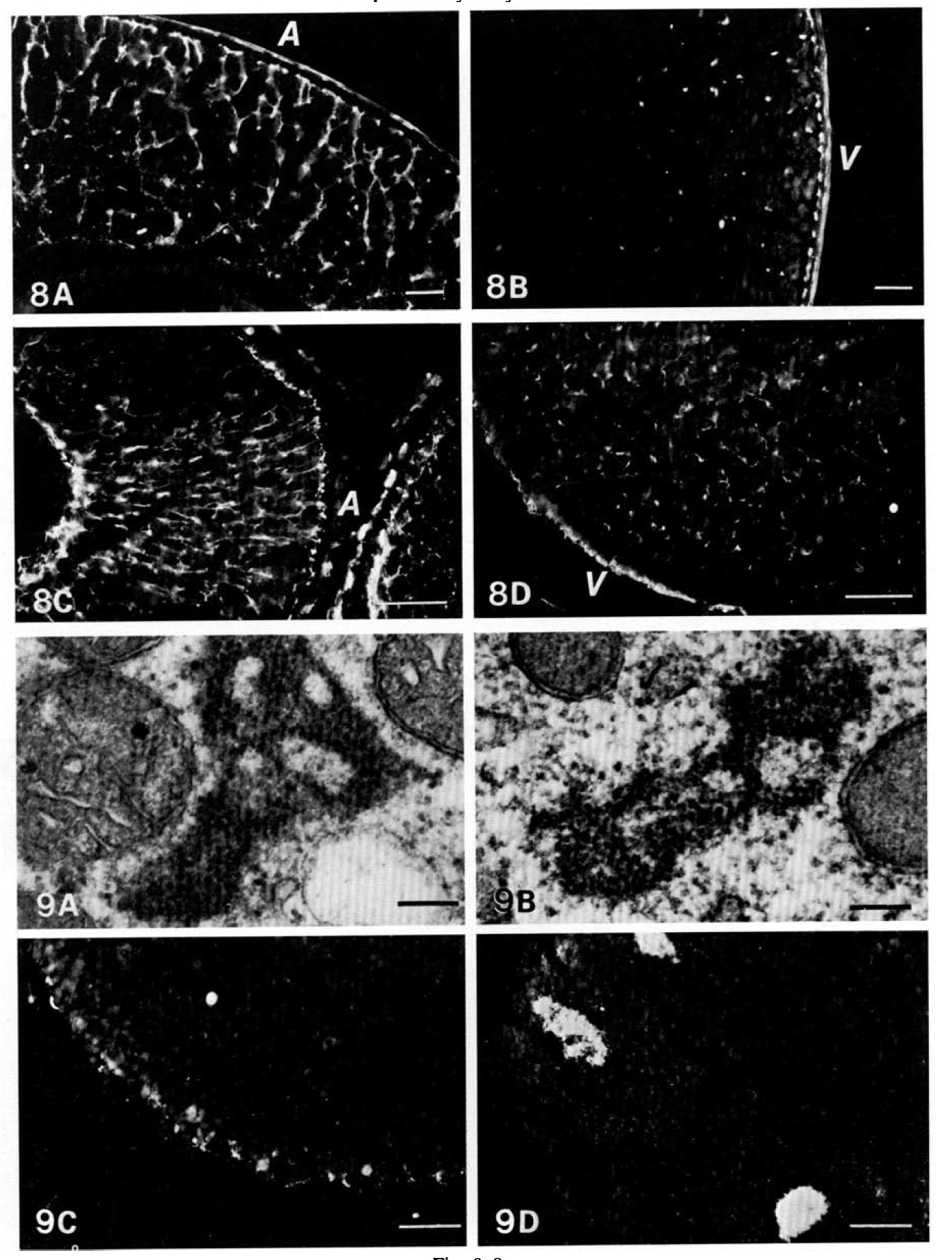 Fig. 8. (A) and (B) show anti-vimentin staining of late vitellogenic oocyte in animal (A)