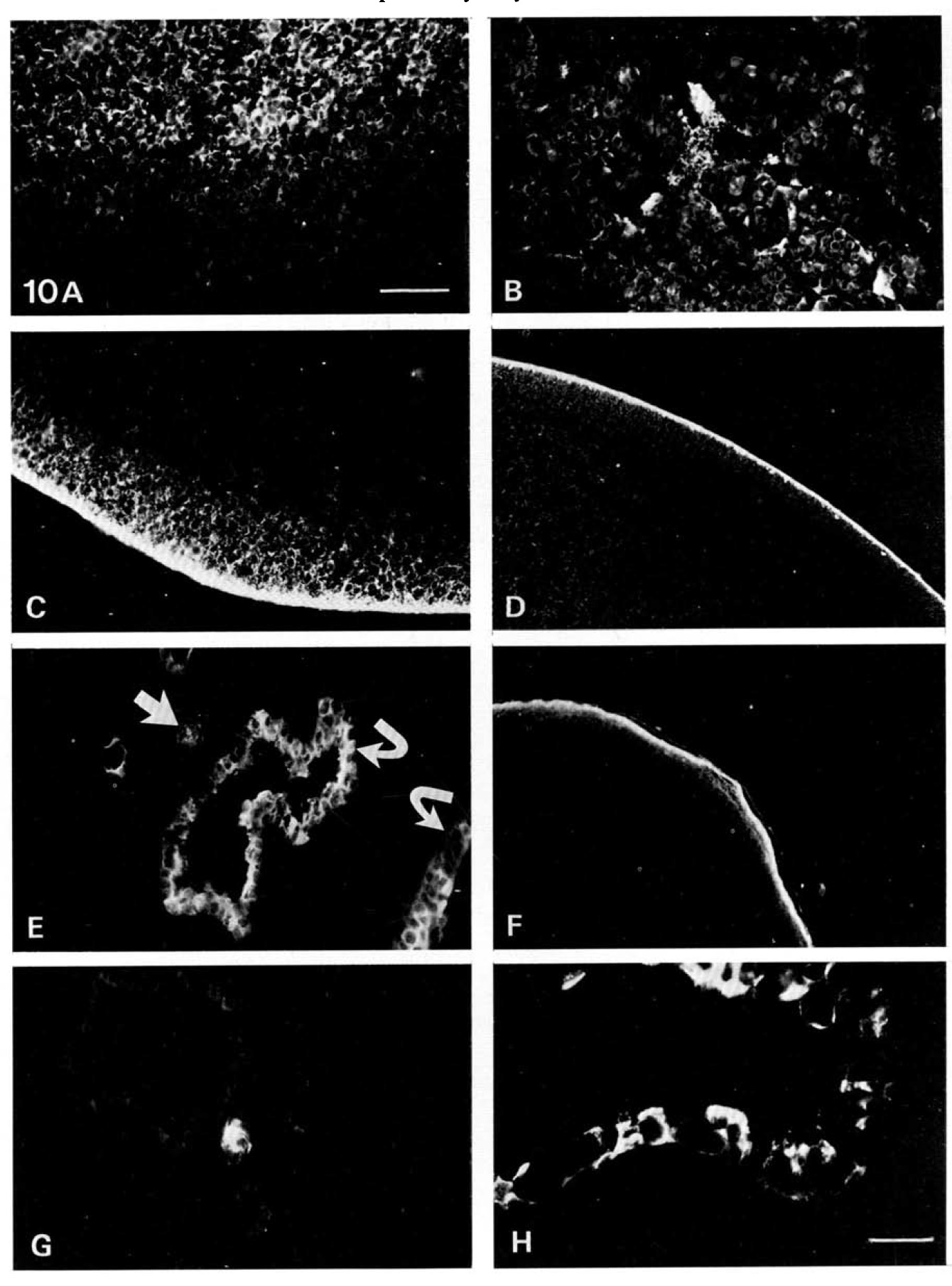 Fig. 5. Anti-cytokeratin (kindly donated by Dr E. B. Lane) staining of early (A and B)