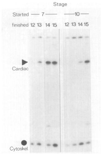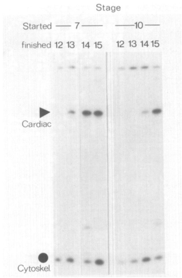 started at stage 10 (gene transcripts first seen at stage 14). Cardiac,
