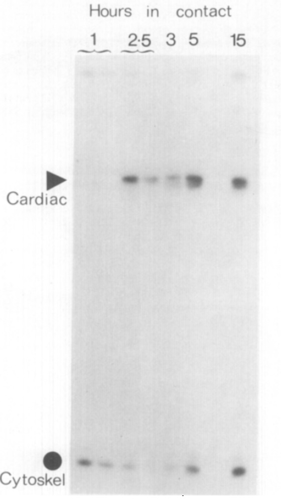 and of 135 nucleotides with cytoskeletal actin mRNA (0), as explained