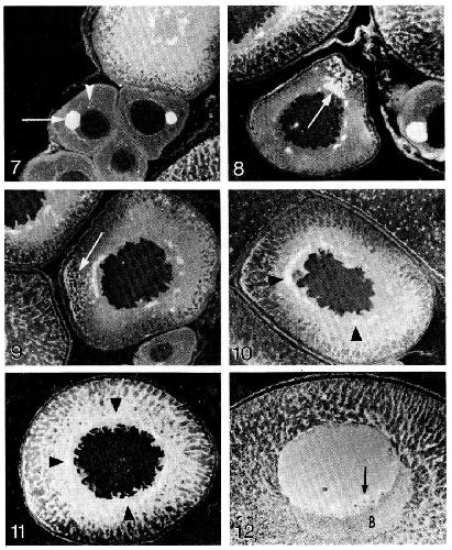 that in Fig. 11 and in Fig. 4 to that in Fig. 12. Arrows, Balbiani body; arrowheads,