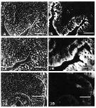 Figs 1-2. Immunofluorescence labelling of frozen sections of Xenopus gut with anticytokeratin