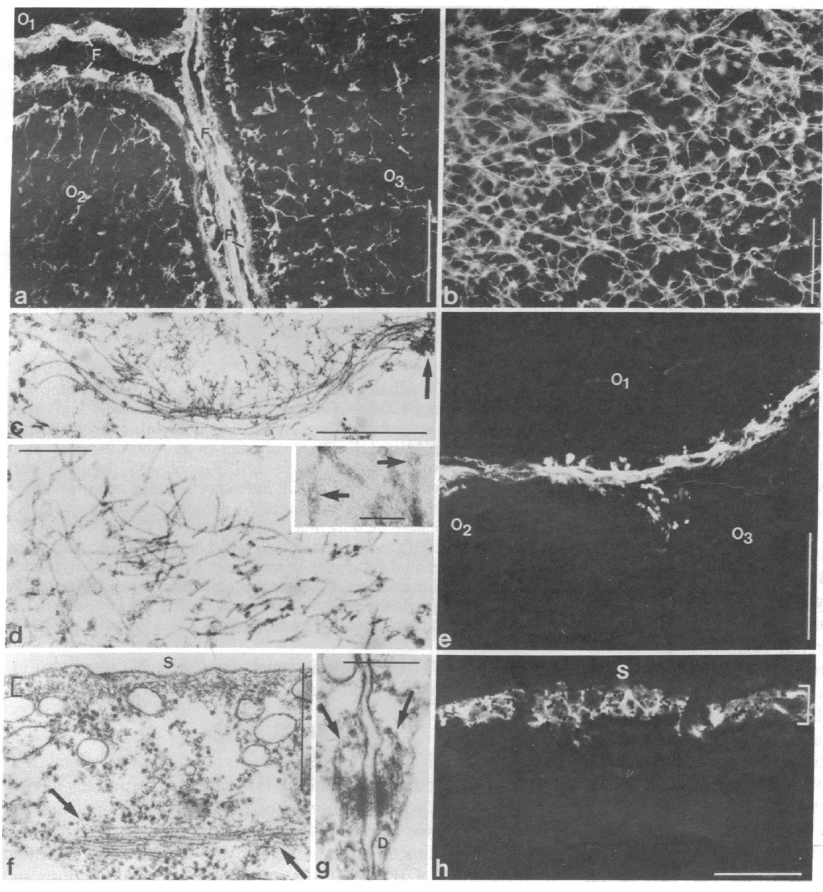 (Bar = 0.2 /Lm.) (h) Immunofluorescence