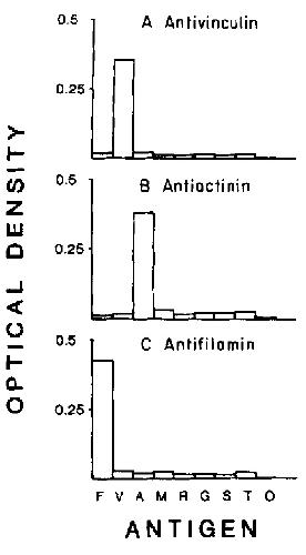 reference 9. F, filamin; V, vinculin; A, a-actinin; M, myosin; R,