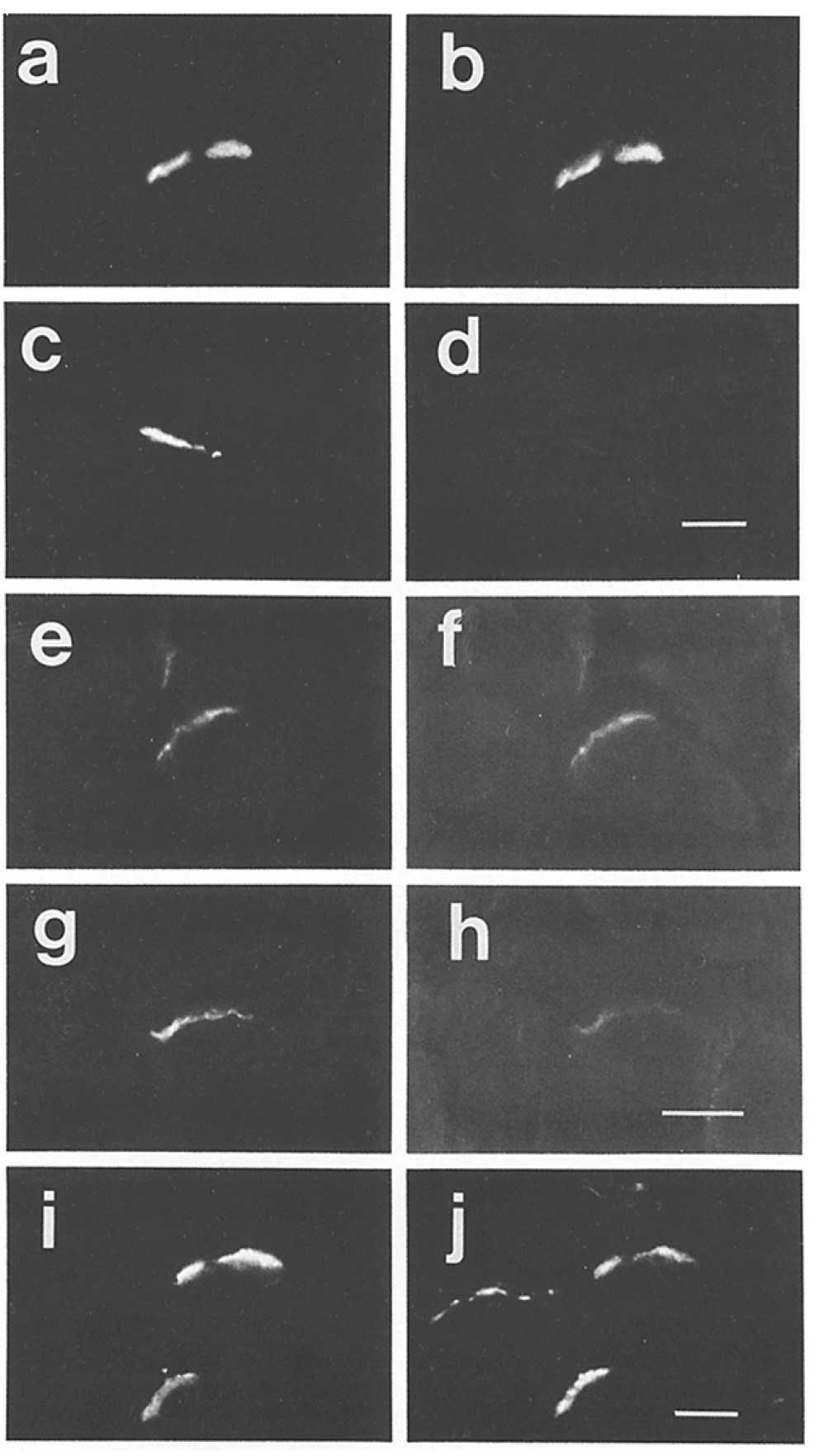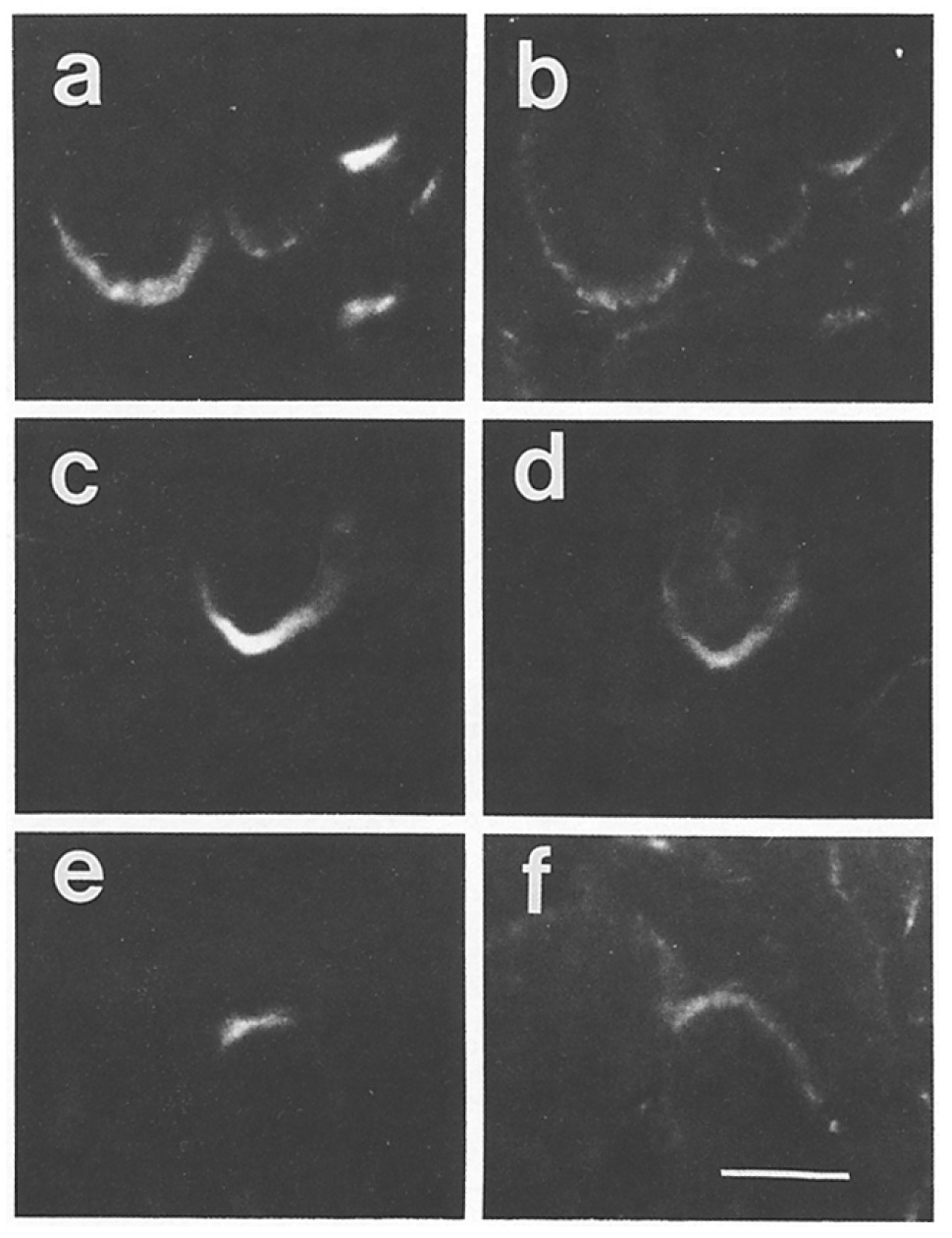 by the antibodies. Some weak extrajunctional staining is also apparent in a and e; staining of the contractile apparatus is evident