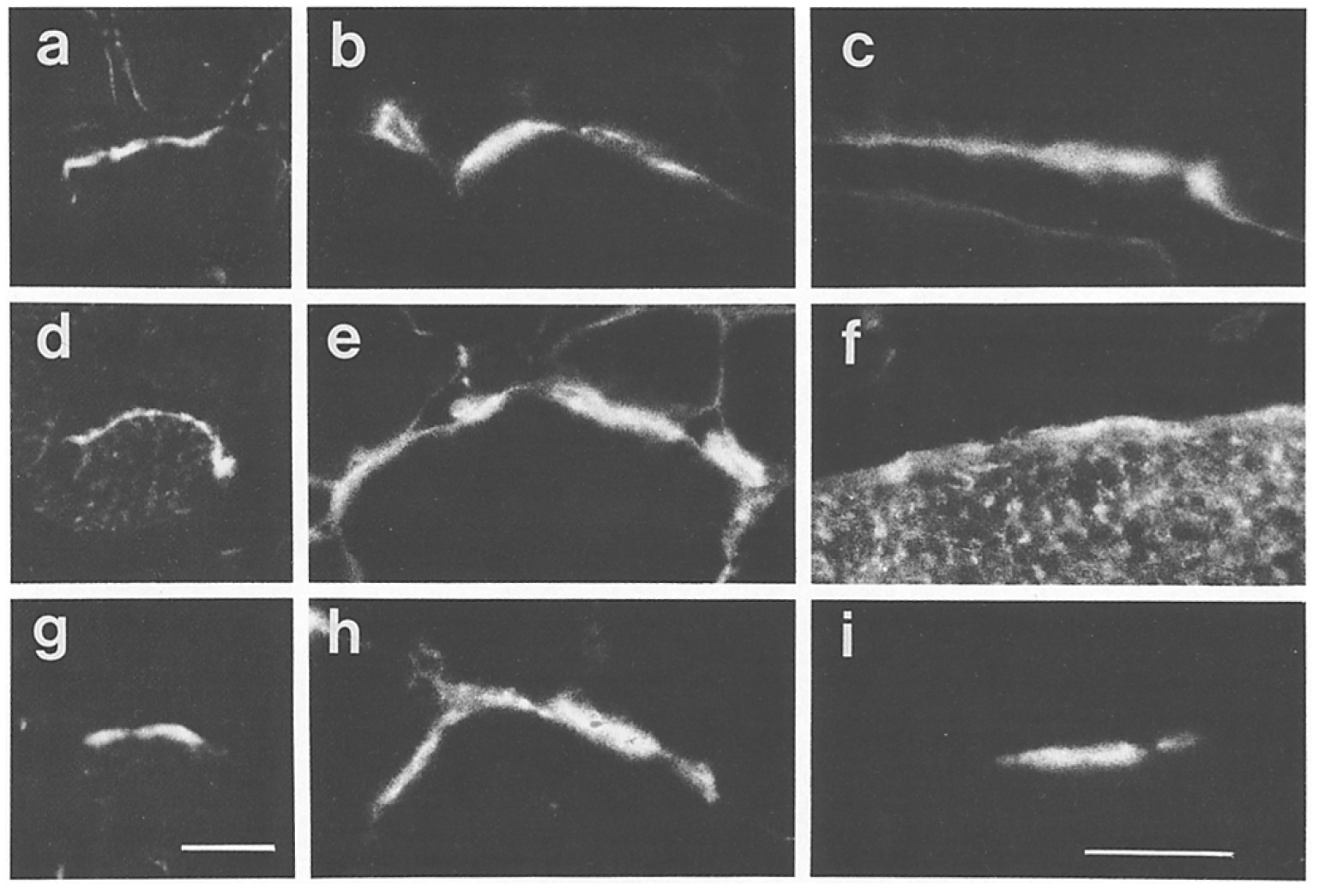 in f, and, more faintly, in d. Bars, 20 pm. The bar in g also applies to a and d, and the bar in i applies to the rest of the panels.