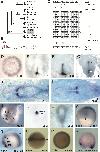 Fig.1. Primary Structure and Expression of TSK(A) Phylogenetic tree of the SLRP family. We used human protein sequences, C-TSK, and X-TSK in a Clustal W analysis.(B) Schematic drawing of the primary structure of C-TSK. LRRs are indicated as circles. Cysteine residues are indicated as red bars. SP, signal peptide.(C) 11 leucine-rich repeats have been aligned and yield a C-TSK consensus sequence (indicated at bottom). Conservation of leucines has been calculated (%).(DâJ) In situ hybridization with C-TSK.(D) Stage XIII. The expression is detected mainly in the epiblast of the area opaca and weakly in the hypoblast.(E) Stage 2. Expression in the newly formed primitive streak.(F) Late stage 3. Expression in the primitive streak.(G) Stage 4. Expression in the primitive streak (white arrowhead) and Hensen's node (black arrowhead).(H) Stage 7.(I) 8+ embryos. Strong expression in the newly formed somites.(J) Stage 25. Expression in wing and leg buds (black arrows), the edge of pharyngeal arch 2 (black arrowhead), and nasal pit (white arrowhead).(K) Stage 4. Localized expression of chordin in Hensen's node.(L) Expression of BMP4 at stage 4.(M and N) In situ hybridization with X-TSK at stage 10.5 (M) and stage 21/22 (N); br, branchial crest segment; ma, Mandibular crest segment; so, somite.(OâQ) In situ hybridization with Z-TSK at shield stage (O, lateral view; P, anterior view) and 10 somite stage (Q, lateral view).