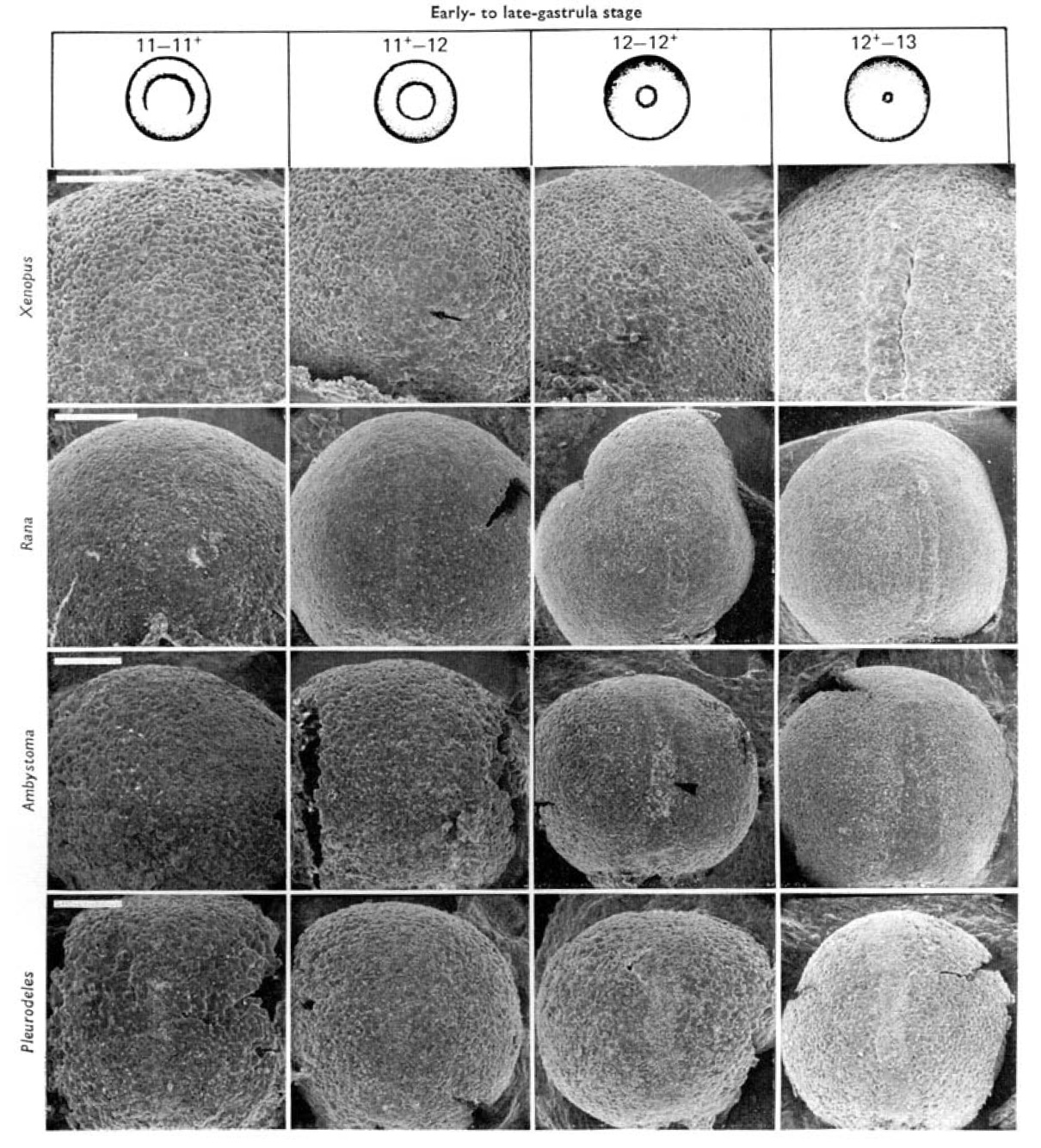 made by the blastopore of Ambystoma gastrulae viewed ventrally and externally.