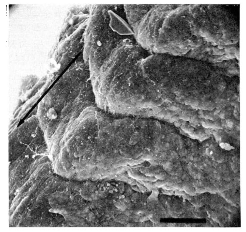 Fig. 2e. Lateral surface of the Xenopus notochord at stage 12+. Endodermal roof