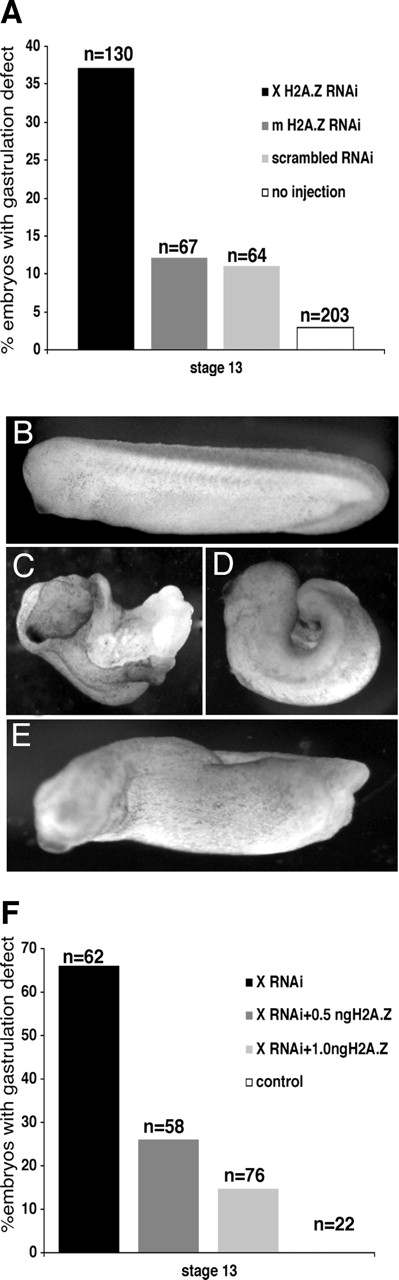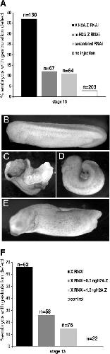 RNA (D), and Xenopus H2A.Z RNAi 1 ng of H2A.Z RNA (E). F,