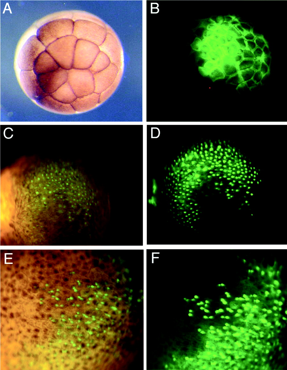 EGFP RNA. A, at stage 5–6 green EGFP cannot be detected. B, by stage