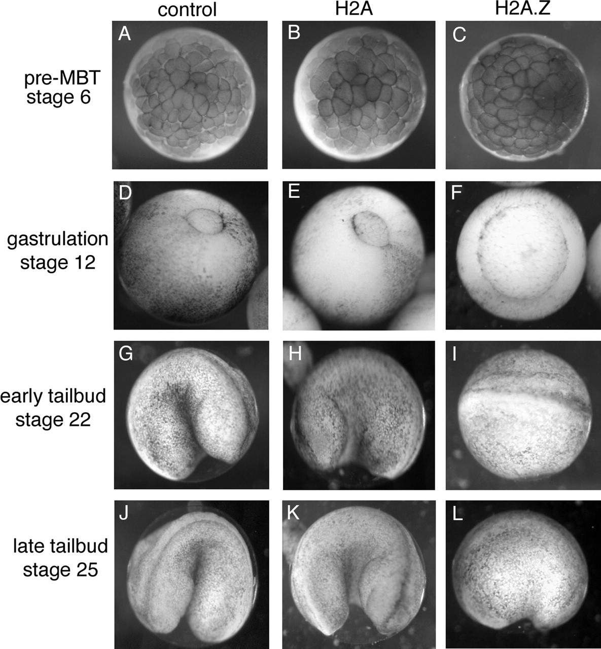 the MBT. Xenopus embryos were injected with 1 ng of H2A.Z/