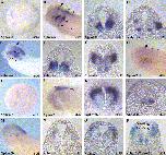 Fig. 3. Ventral and lateral domains of Xphox2a and Xash1 expression. Patterns of gene expression were characterized as indicated by whole-mount in situ hybridization at neural plate/fold (AâE, GâL), neurula (F) and early tailbud stages (MâO). The ventral side of the embryo is shown in (A,EâG,I). In (B,H,J), both dorsal and ventral domains of XPhox2a, N-tubulin and Xash1 expression are visible in a neural plate/fold stage embryo. In (F), Xnkx2.5 staining is blue and Xphox2a positive cells are magenta. A transverse section through the neural plate of embryos probed for Xphox2a(C,D) or Xash1(K,L) is shown at low (C,K) and high (D,L) magnifications.