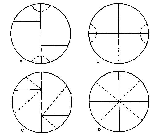 Fig. 1. Diagrammatic representation of the position of the 4th cleavage planes