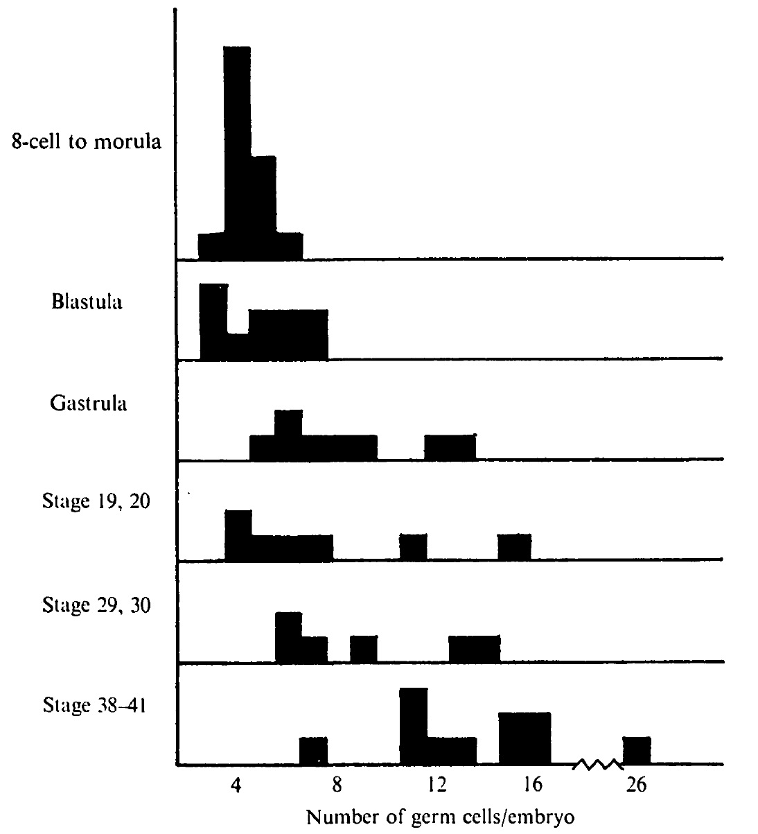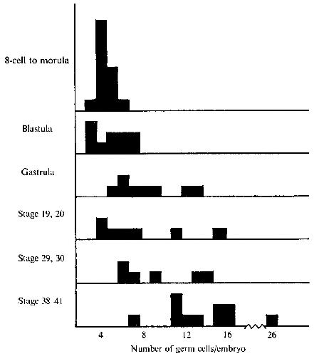 Fig. 2. Frequency distribution of the numbers of presumptive primordial germ cells