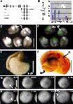 Fig. 4. Effect of CB-1 peptide on development. (A) CB-1-injected embryos exhibit marked axis shortening and open blastopores. (B) Sibling embryos to those in panel A injected with scrambled peptide develop normally. Scale bars in panels A and B are 1Â mm. (CâF) Embryos injected with 300Â ng CB-1 peptide exhibiting graded levels of gastrulation arrest that correlates with fibrillin antibody staining. Scale bars for panels CâF is 0.5Â mm. (C) An injected embryo exhibiting strong gastrulation arrest exhibits little fibrillin staining and a large open blastopore and will develop into an embryo such as shown in panel A. (D) An embryo that is progressively better at closing its blastopore exhibits progressively more fibrillin staining. The majority of injected embryos appear like those in panel C or D. (E) Embryos that do close their blastopore can exhibit fibrillin staining defects, such as the somitic staining on only one side seen in dorsal view here (side lacking fibrillin staining indicated by arrow). (F) A few injected embryos exhibit normal fibrillin staining but still exhibit a slightly abnormal morphology. (G) Time-lapse sequence showing failure of blastopore closure in an injected embryo; compare to Fig. 1H for normal closure. Scale bar is 0.5Â mm. AF = axial fibrillin staining; YP = yolk plug.