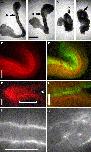 Fig. 2. Morphology and XF fibrils in deltaXF-expressing explants. (AâD) Keller sandwiches made from embryos injected with increasing doses of deltaXF, allowed to extend and stained for notochord (N). Scale bar in panel B is 0.2Â mm. (A) Control sandwich from uninjected embryos (representative example shown, n = 5), (BâD) 0.5Â ng, 1Â ng and 2Â ng deltaXF RNA per dorsal blastomere, respectively (n = 3, 3 and 5, respectively). (EâH) Explants stained for native XF immunoreactivity (E and G), and both native fibrils (red) and GFP (green), indicating the region of delXF expression, with yellow being the combined signal (F and H). Arrowhead in panel G indicates bifurcation of explant, and bracket indicates region shown in panel H. Scale bars are 0.1Â mm in panels EâJ. (I) XF fibrils around notochord of an uninjected open face explant and (J) XF fibrils in notochord region of explant globally expressing deltaXF.
