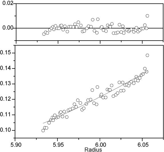 Figure 4. Sedimentation equilibrium of the T2 domain. The sedimentation equilibrium profile of T2 (at 0.14 mg ml−1) in 10% glycerol is shown. The experiment was performed using an Optima™ XLA at 3000 r.p.m., 20°C and the scans taken at 280 nm every 5 h over 24 h. The fitted curve is for a single-species model with Mr = 430 kDa.