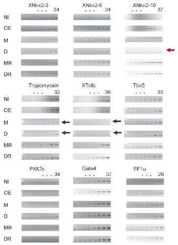 PCR cycle #45. (C) The RT-PCR products of XNkx2-3, XNkx2-5,