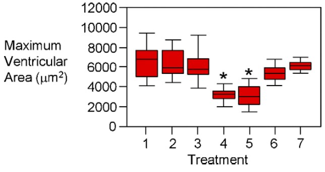 significantly reduced the maximum ventricular area of their respective