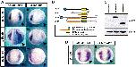Supplemental Fig. 1. Embryos injected with mRNA encoding β-gal and untagged δLef1 (i, iii, v) or untagged δXTcf3 (ii, iv, vi) were examined by in situ hybridization for expression of Sox3 (i, ii); Slug (iii, iv); and C-myc (v, vi). All embryos are positioned showing anterior/dorsal side, with their injected side to the right (arrow). Red staining is lineage tracer β-gal. δXTcf3 potently expands the neural plate marker, Sox3, and strongly inhibits markers of the neural crest (Slug and C-myc) and placodal regions (C-myc). At equivalent levels of injected mRNA, δLef1 has little or no effect on expression of these markers. These findings are fully consistent with results using epitope tagged forms of these proteins.