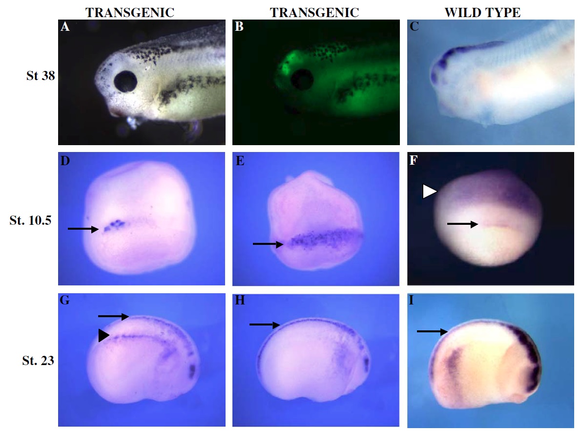 (A,B,D,E,G,H). Transgene expression was visualized by fluorescence (B) or wholemount in situ hybridization (WISH) using a GFP antisense riboprobe