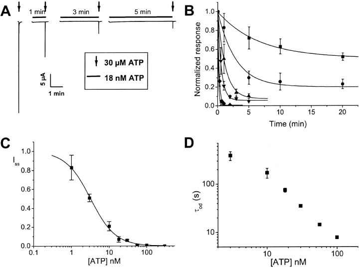 Activation and desensitization of the recombinant P2X1 receptor at nanomolar ATP concentrations.
