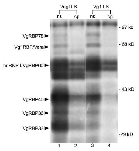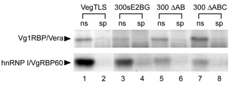 of Vg1RBP/Vera (top) or hnRNPI/VgRBP60 (bottom), and either
