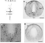 stages. In free-swimming larval stages (stages 43–47), the most prominent group of NOS-positive neurons are found in the brainstem and only a few isolated neurons