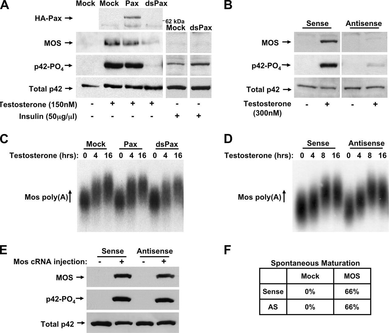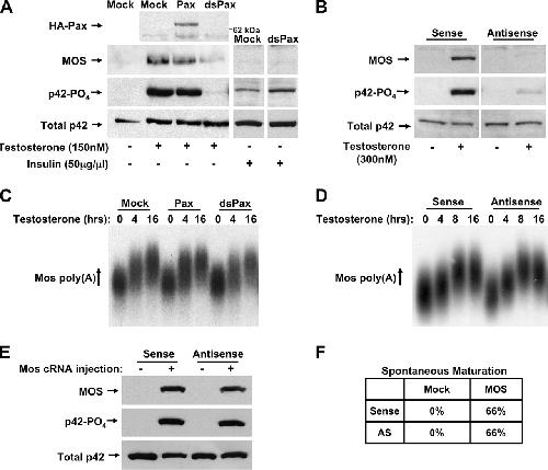 of RNA represents increased polyadenylation. E and F, MOS rescues the inhibition of maturation from