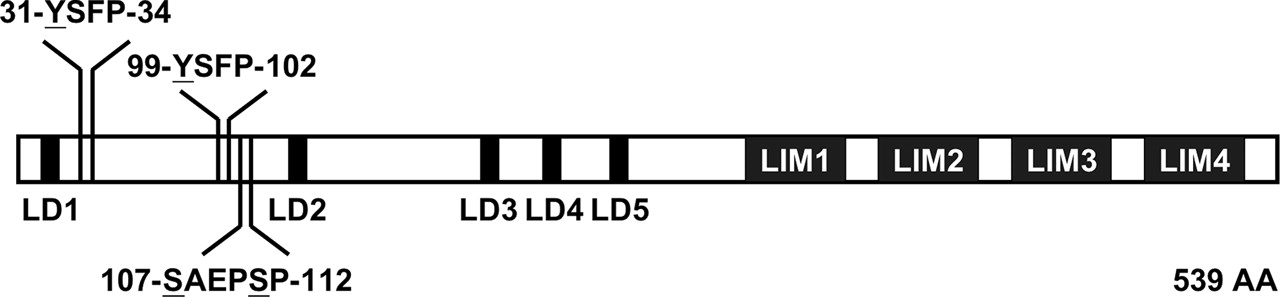 homology to mammalian isoforms of Paxillin. The N-terminal half has five LD
