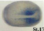 tbx6r ( T-box 6 related) gene expression in Xenopus laevis embryos, NF stage 17, as assayed by in situ hybridization, dorsal view, anteriorleft.